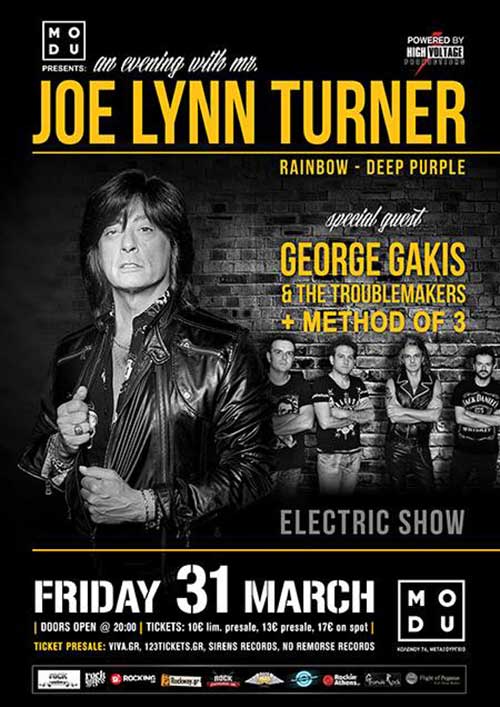 Ένα μοναδικό electric show του θρυλικού τραγουδιστή Joe Lynn Turner, φωνή των Rainbow, Deep Purple και τόσων άλλων μαζί με τον Γιώργο Γάκη και τους The Troublemakers σε ένα setlist για όλα τα γούστα του Classic Rock.
