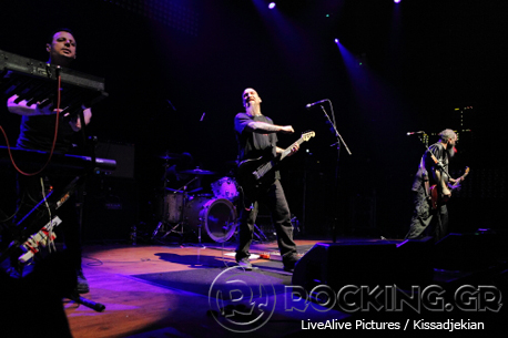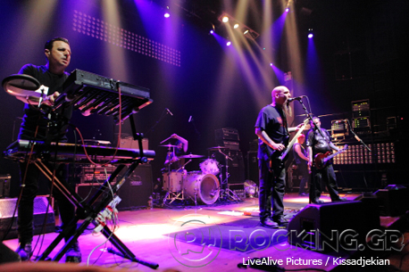 Σιγά σιγά κι αφού ανεβοκατέβαιναν στην σκηνή με ζακέτες, καπέλα και κουκούλες (λες και δεν θα τους γνωρίζαμε), ετοίμασαν τα πάντα και έσβησαν τα φώτα. Συγκίνηση, αγάπη, λατρεία, ανατριχίλα και δέος. Δέος όταν τα πέντε θηρία, πλημμύρισαν με τις παρουσίες τους και τον ήχο τους όλο το μαγαζί. Από τις ήρεμες, απαλές και ατμοσφαιρικές πρώτες νότες του εκπληκτικού "A Sun That Never Sets" ο κόσμος έδειξε την εκτίμηση στο συγκρότημα. Σχετική ησυχία στα ήρεμα περάσματα, που δεν έσπαγε από τους συνήθεις αγενείς της γαλαρίας. Αυτό και μόνο μου αρκούσε για να μπω για τα καλά στο κλίμα.