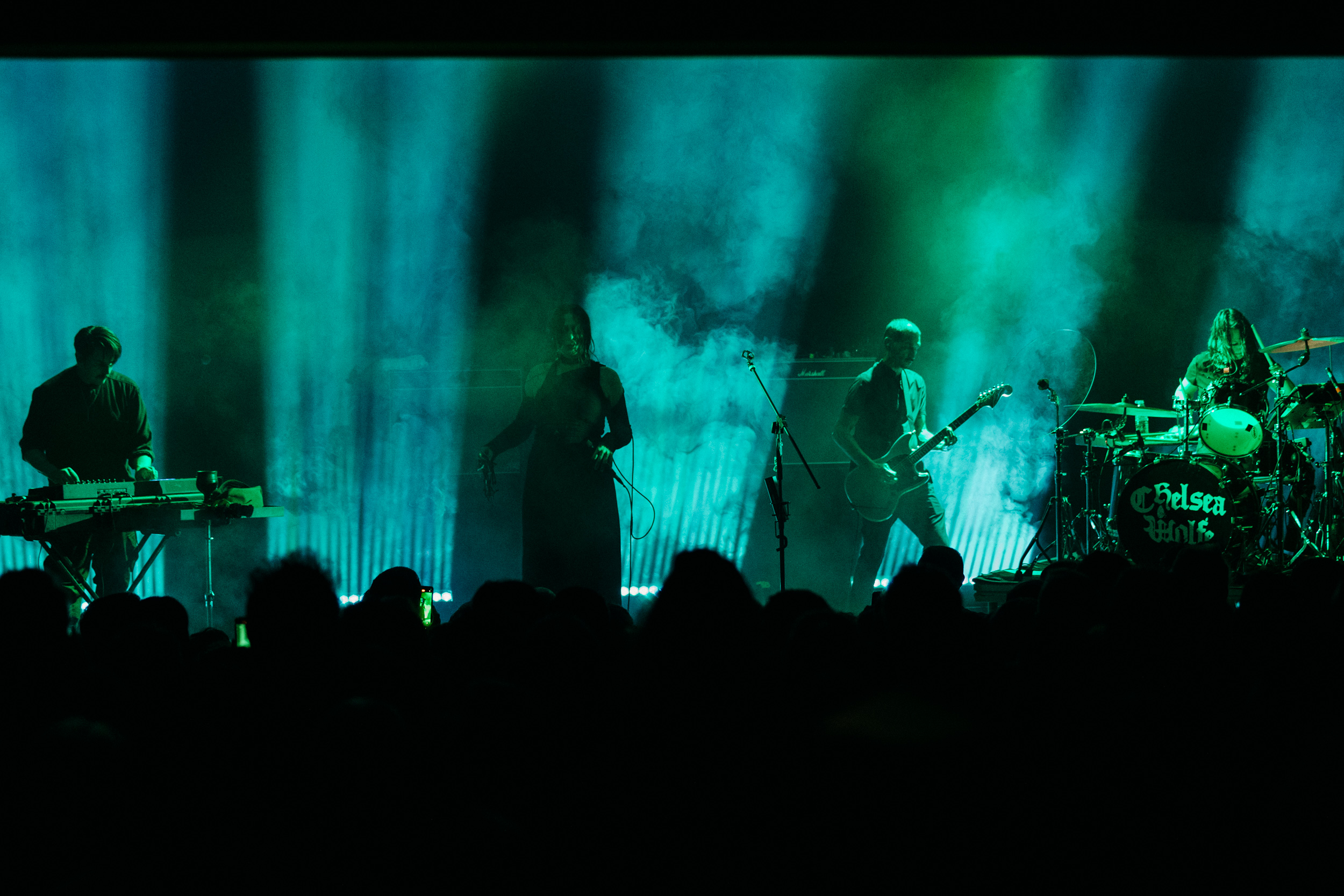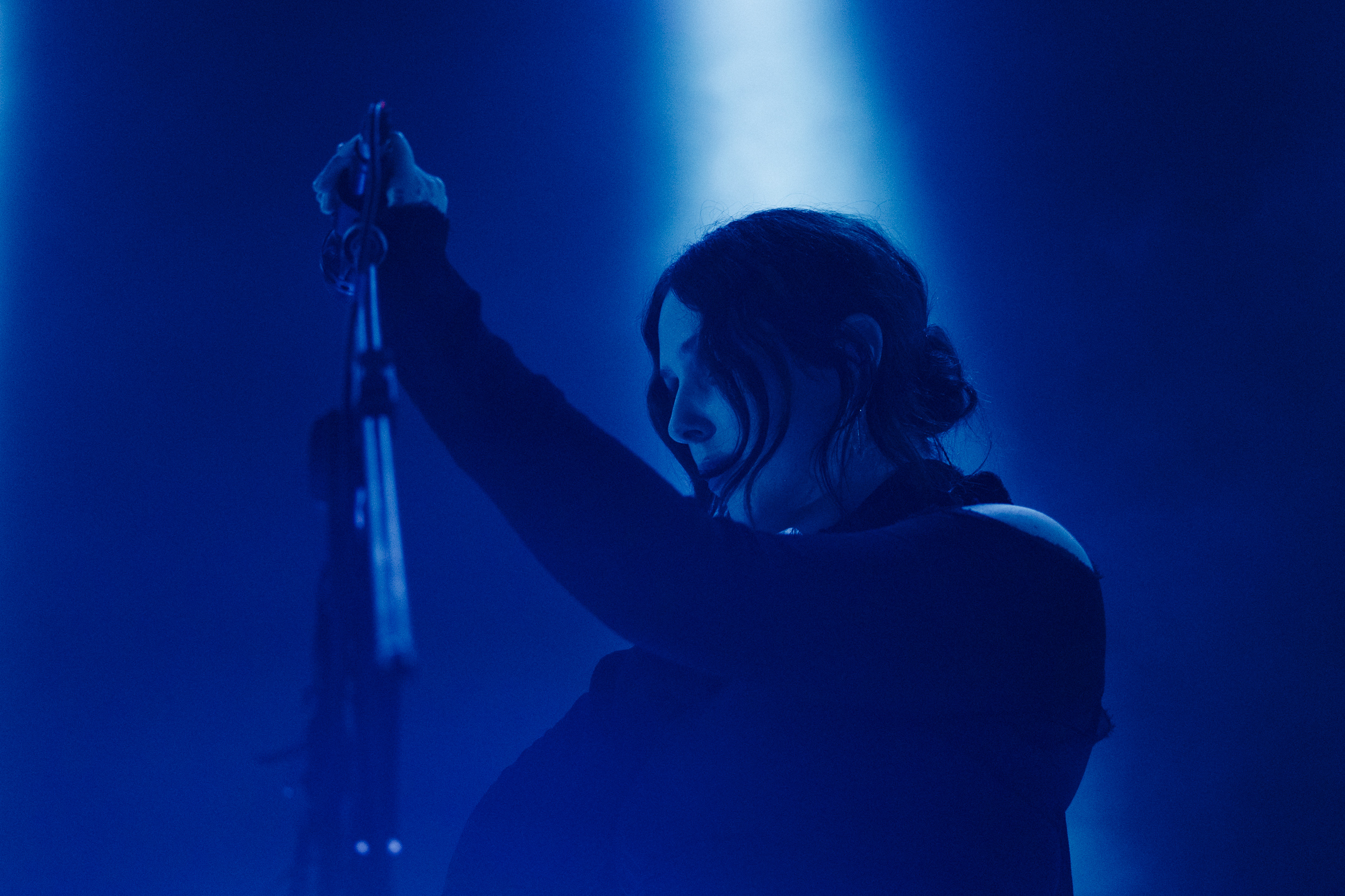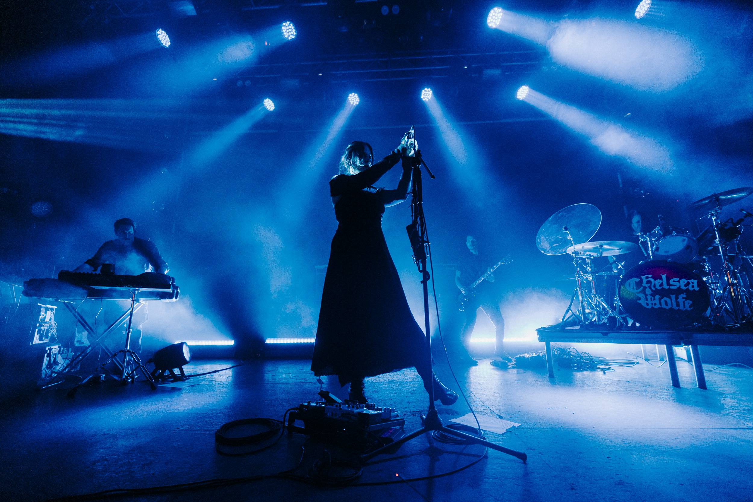 Η ώρα δέκα. Κρατιέμαι σφιχτά από το gin tonic μου, ενώ κλείνω το κινητό. Υπάρχει κάτι που συνδέει άρρητα, φρικτά ενδεχομένως με τη μουσική της Chelsea Wolfe και την ύπαρξή μας στον κόσμο και ως θηλυκότητες σε αυτή τη σκηνή. Δεδομένης της πρότερης εμπειρίας της ομάδας μας εντός της χρονιάς με την εμφάνισή της στο Roadburn Festival τον περασμένο Απρίλη, γνωρίζαμε τι να περιμένουμε. Συγκριτικά με την προηγούμενη, παρθενική εμφάνισή της στη χώρα μας σε εποχές που μοιάζουν μια ζωή πίσω, η Chelsea Wolfe αναδύεται ως μια καλλιτέχνης που έχει διεκδικήσει και κερδίσει τη θέση της πάνω στη σκηνή. Μια θέση με την οποία πάλευε μέσα της. Με το άγχος, την αγοροφοβία, τους προσωπικούς της δαίμονες. Πλέον, βλέπουμε μια γυναίκα που έχει βρει τους τρόπους διαχείρισης του κάθε της πόνου, κρύβεται πίσω από τα χέρια της, χορεύει, χρησιμοποιεί τα μαλλιά της ως κουρτίνα προστασίας από τον έξω κόσμο και αφήνει την συγκλονιστική φωνή της να οδηγήσει τον εαυτό της, τη μπάντα της και τα περισσότερα από χίλια άτομα που βρέθηκαν να την παρακολουθήσουν.