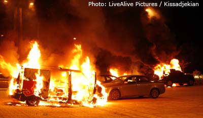 Κατά τη διάρκεια των επεισοδίων αρκετά αυτοκίνητα τυλίχθηκαν στις φλόγες. Περισσότερες λεπτομέρειες δεν έχουν γίνει ακόμα γνωστές.