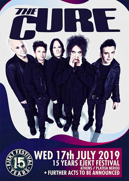 Στις 17 Ιουλίου 2019 οι The Cure θα ανέβουν στη σκηνή του Ejekt Festival, στην Πλατεία Νερού στο Φάληρο - τον πιο όμορφο συναυλιακό χώρο της καλοκαιρινής Αθήνας, ακριβώς δίπλα στη θάλασσα, για μια εμφάνιση που θα έχει διάρκεια πάνω από 2 ώρες και θα συνοψίσει την τεράστια καριέρα τους.